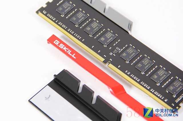 芝奇F4-3200C14D-16GTZ内存采用了拉丝铝工艺马甲表面,一侧为银灰色,另一侧为黑色,顶部的红色树脂条,印有白色G.SKILL LOGO,醒目兼具时尚大气。