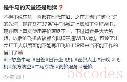 对此,有朋友指出,她的公司要求必须搭乘东航航班出差,就是因为可以联网随时工作。