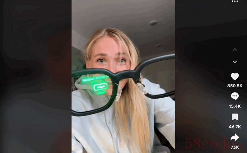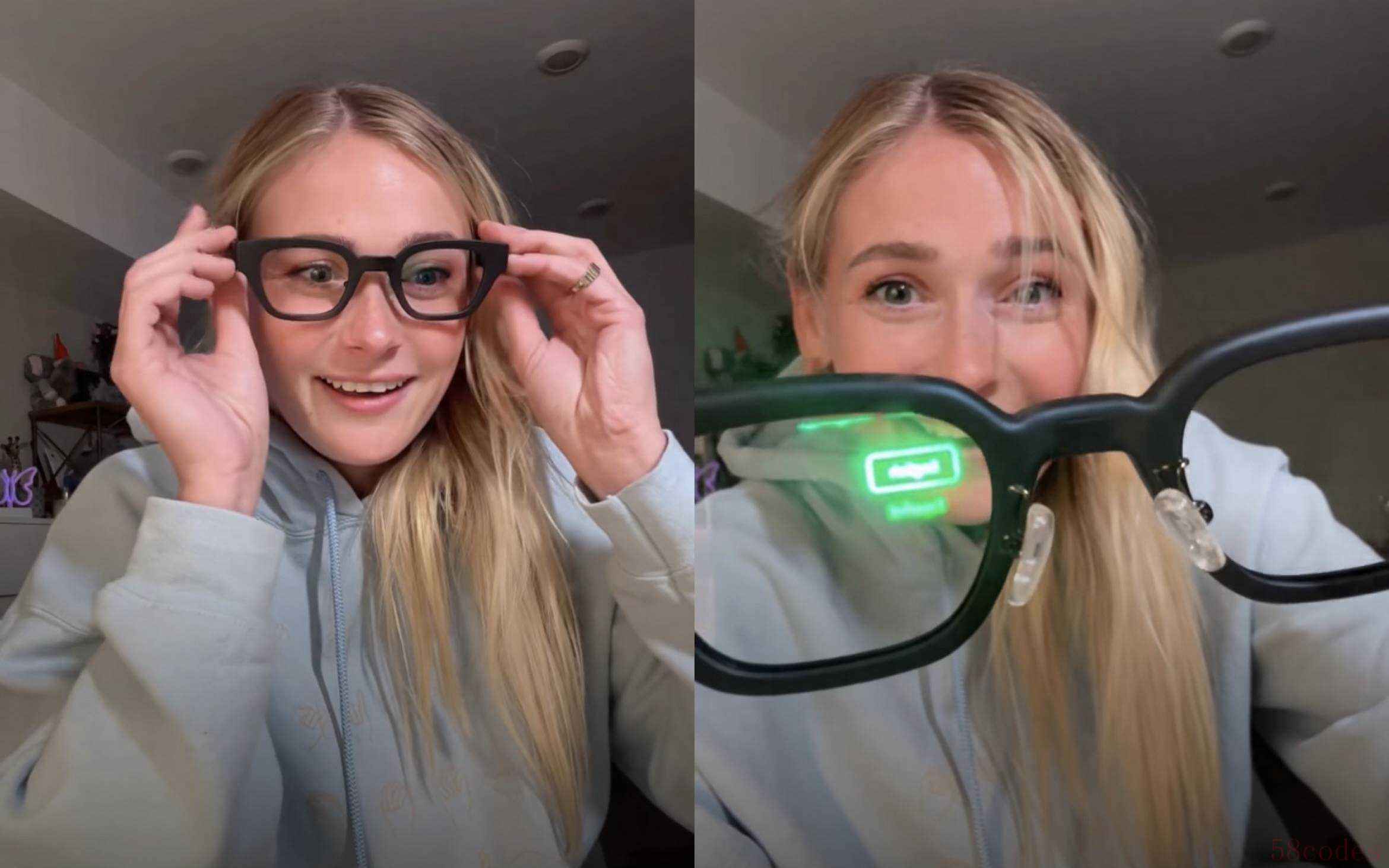 盒子里装的是一款字幕眼镜,外形和普通眼镜没什么两样,却让她可以「看到」周围的声音,那些过去听不清的声音,变成了一行行亮绿色的、科幻感的字幕。