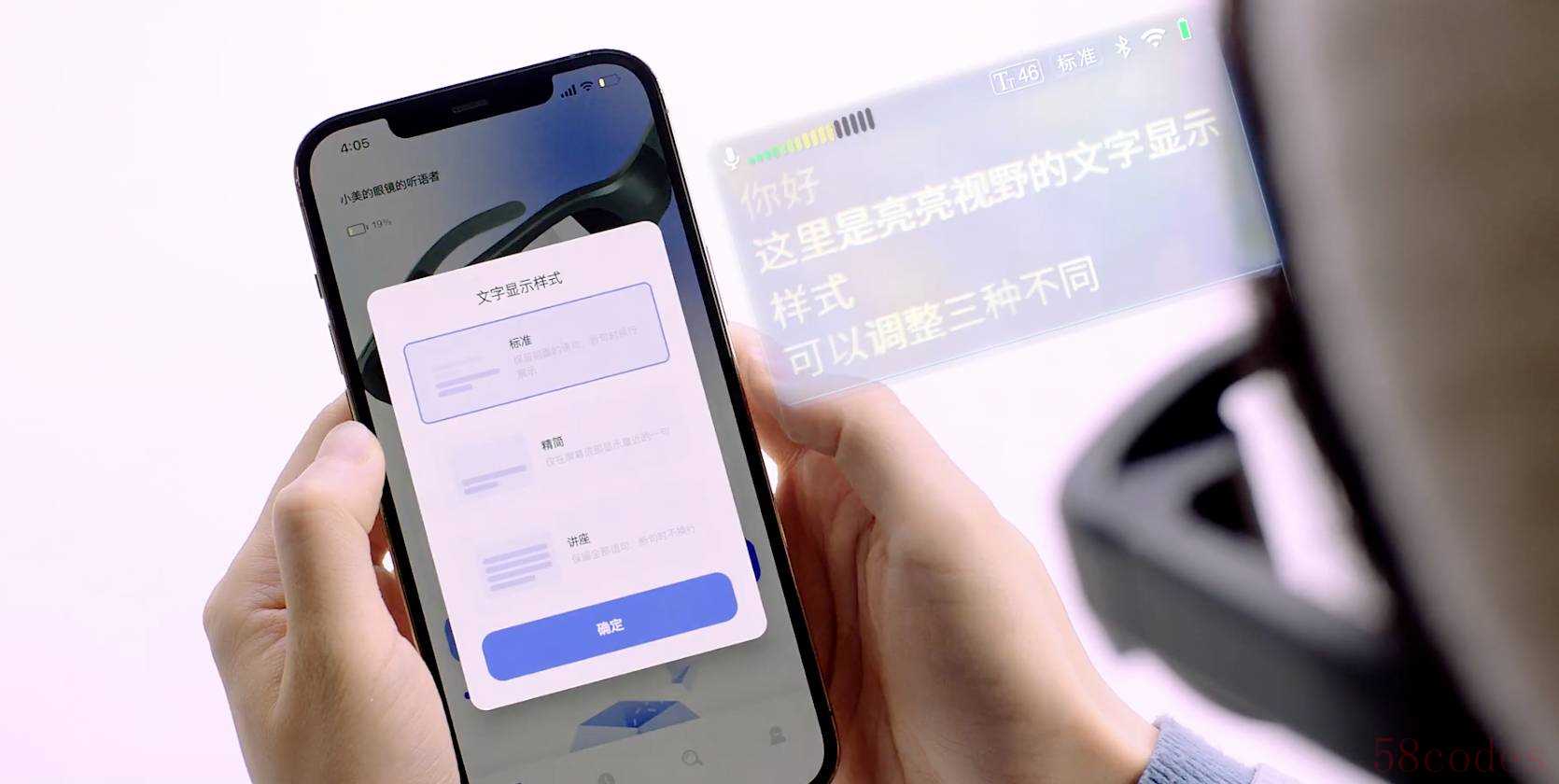 它不是一副眼镜,而是一个平视显示器,可以卡在眼镜的镜框上,开箱即用,将设备连接到 iOS 和 Android 的配套 app,让用户选择自己喜欢的语音转文本软件。