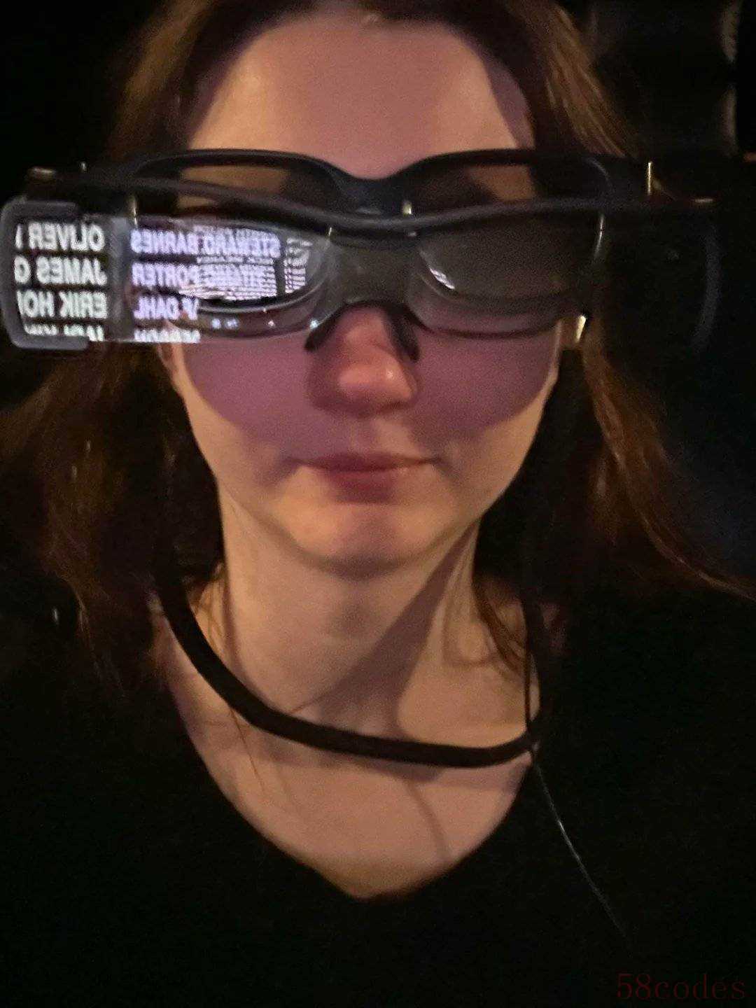 这款眼镜甚至支持 3D,用户就不必多带副眼镜观看 3D 电影。这很重要,避免了一种鼻梁很忙的情况:同时戴着普通眼镜、3D 眼镜、CC 字幕眼镜看电影。