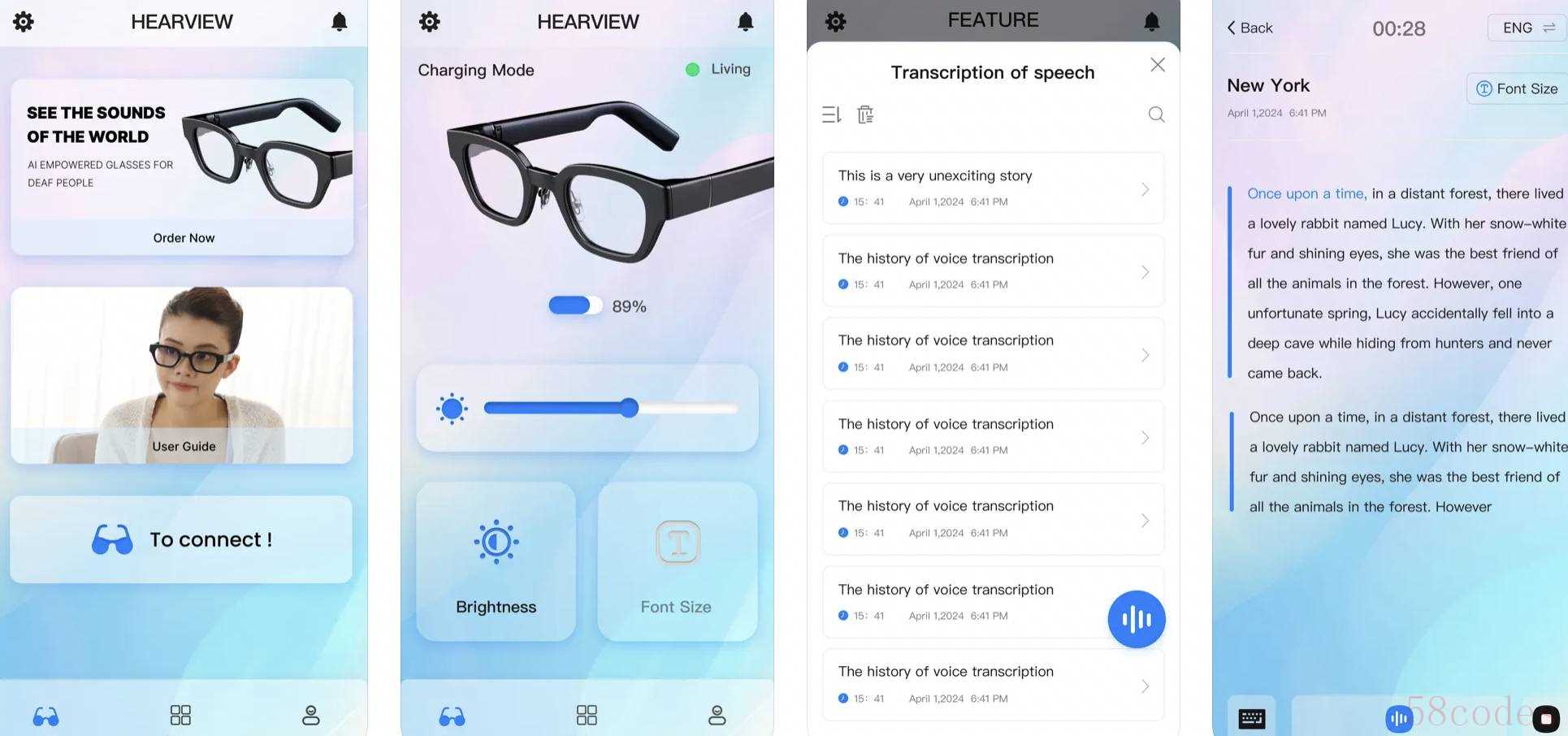 它的使用方式和 Hearview 相近,下载可译 app,眼镜和手机进行蓝牙配对,用 Wi-Fi 或者热点连接网络,手机端实时语音转文本,眼镜端显示文本。