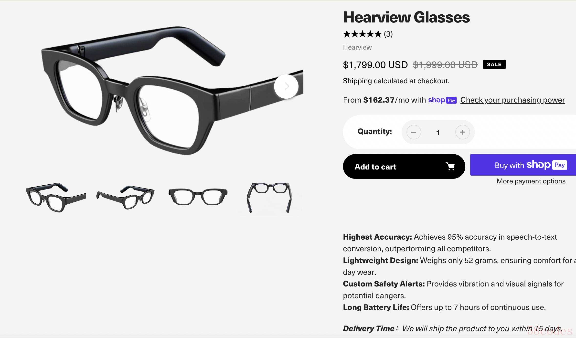 根据视频里的信息,这位博主用的眼镜叫作 Hearview,专为听障人士设计,今年 5 月发布,来自国内的一家科技公司,但不面向国内,市场在海外。