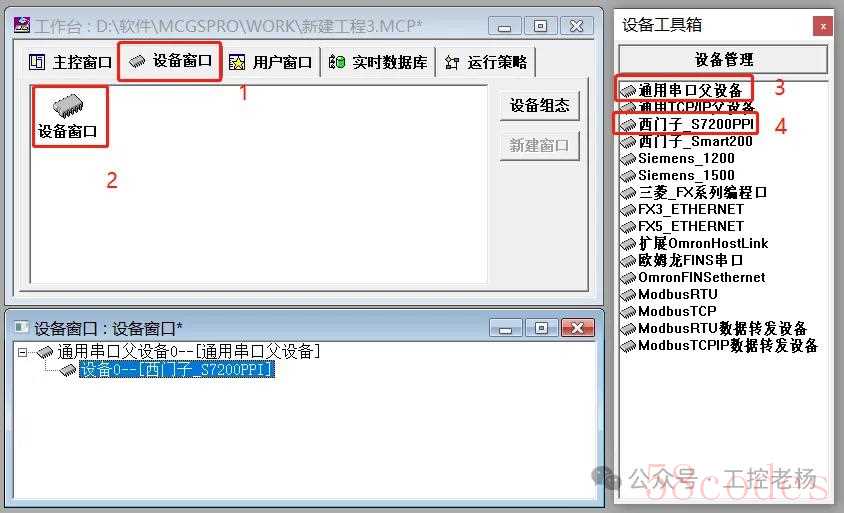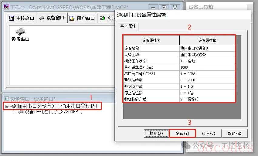 配置与PLC匹配的通信参数:- 串口端口号:COM2