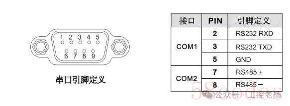 以TPC7022Ew触摸屏为例,其COM2通信端口为485接口,引脚定义如下: