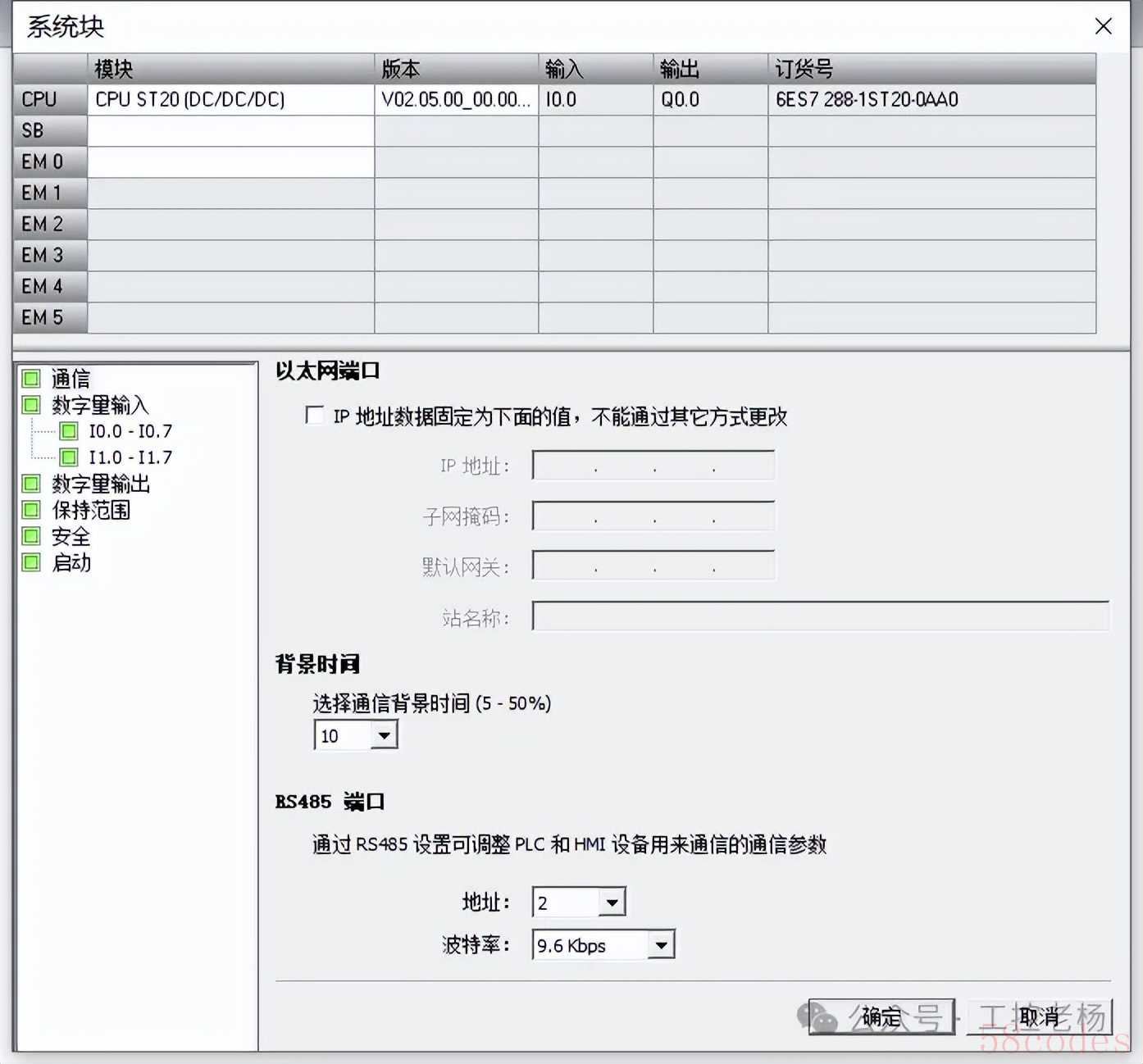 三、S7-200 SMART PLC 配置3.1 系统块设置