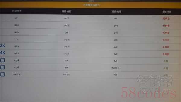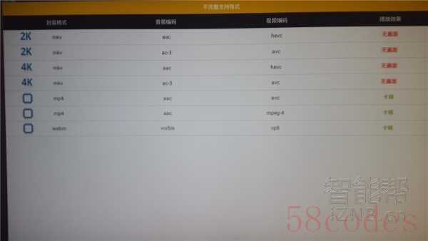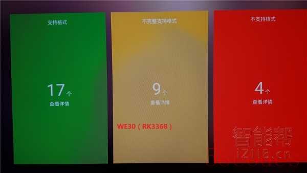 可以看到,WE30在测试中支持的视频格式反而没有较低端的WE20C多,原因何在呢?我对比了下具体项目发现,WE20C的S805虽然不支持4K播放,导致4K测试均是失败,但是其他格式几乎都能支持,而WE30的RK3368虽然支持4K播放,但并非所有的4K格式均能通过测试,而且对其他高清格式的支持还没有S805齐全。