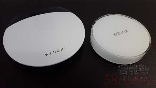 从尺寸上讲,WE20C 为圆柱体,直径95mm,高23mm;WE30 近似飞碟型,直径113mm,高23mm。外壳材质均为硬质塑料。WE30采用的是熊猫配色,黑色主体上覆盖一部分白色上盖,显得简洁优雅,WE20C则小巧得多,白色主体外套了一层透明外壳,晶莹剔透,再加上通电后能变色的logo灯,相比很多电视盒子而言十分精致。