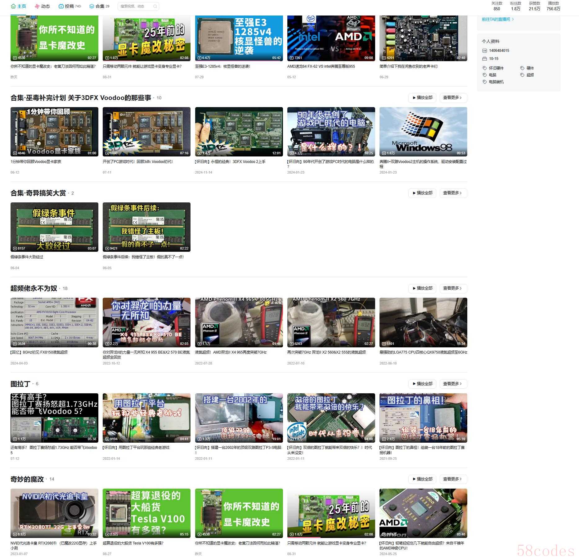 点开“橘猫硬件实验室”的视频主页,观众仿佛进入了一个硬件爱好者的宝库。除了显卡改造,这位博主还展示了铅笔超频、液氮超频、CPU开核等一系列硬核玩法,令人叹为观止。