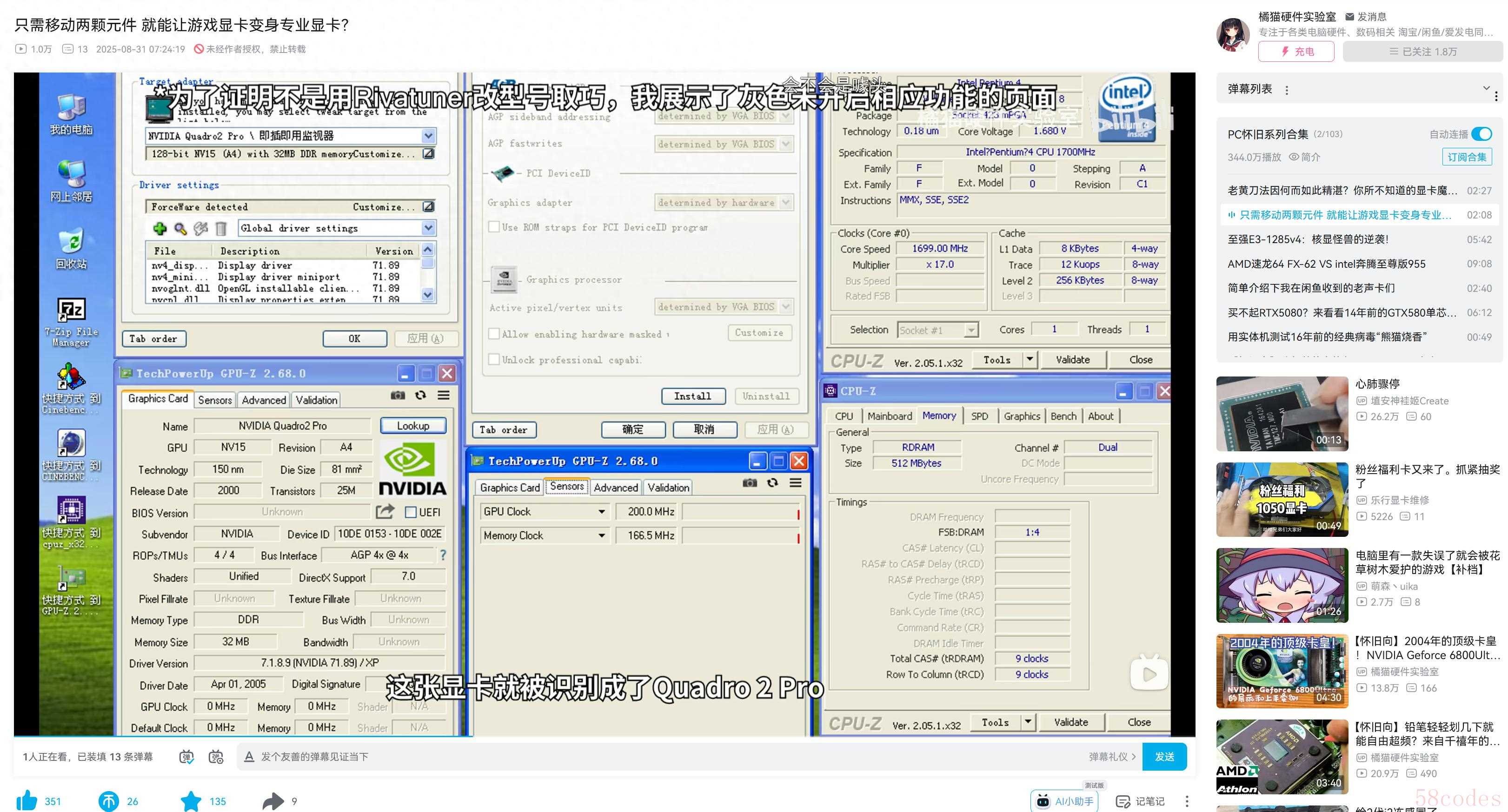 这些显卡诞生于英伟达羽翼初丰的2000年代初期,当时的硬件设计相对简单,游戏显卡与专业显卡在芯片架构上差异较小,仅通过固件或细微硬件设置进行区分。这为硬件改装提供了可能性,而“橘猫硬件实验室”的尝试,正是对这一技术潜力的深度挖掘。