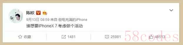 在苹果发布会当天,微博中断更新12天后,陈欧突发了一条微博:“谁想要iPhoneX?考虑做个活动”。两万五的回复和小五万的点赞,在微博上应该算不低了,但对比陈欧风头正劲时的数据,落差还是极大的,何况超4400万粉丝,转发仅过千,更可说是响应者寥寥。