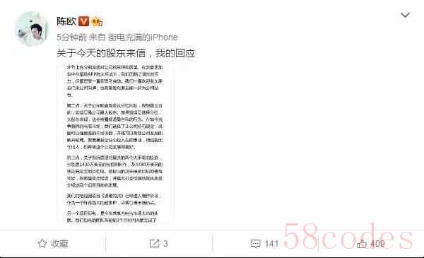 被股东公开质疑:从创业“男神”,到“陈七块”