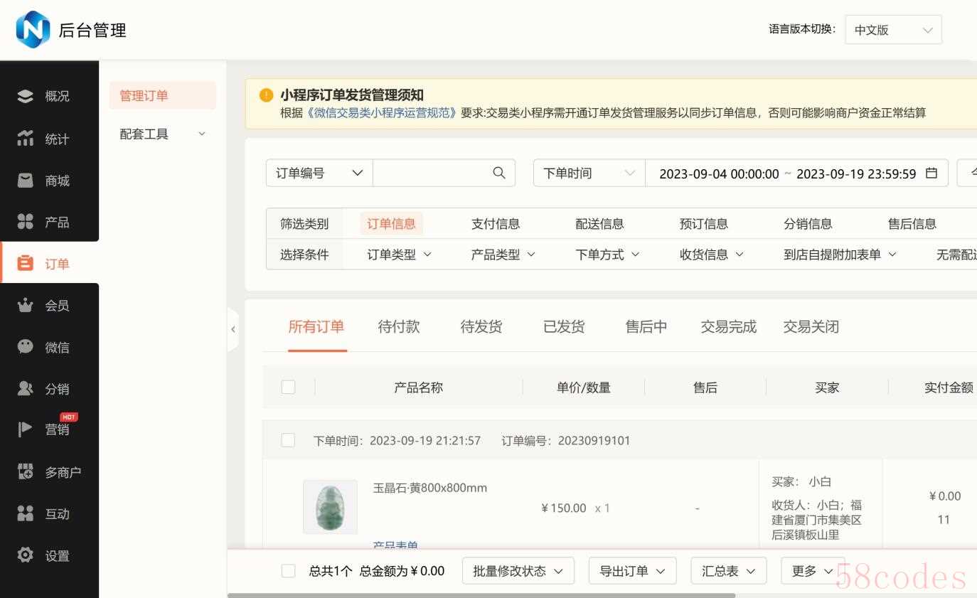 小程序消息通知:开启 “支付成功消息推送”,客户支付后会收到小程序模板消息,包含订单信息和物流查询入口,不用手动发送;