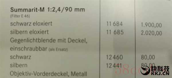 比如上图是一颗光圈2.4,90mm的定焦镜头,M代表这是用在Leica M系列的机身上。对,你没看错,旁边是官方价格,1900欧元。