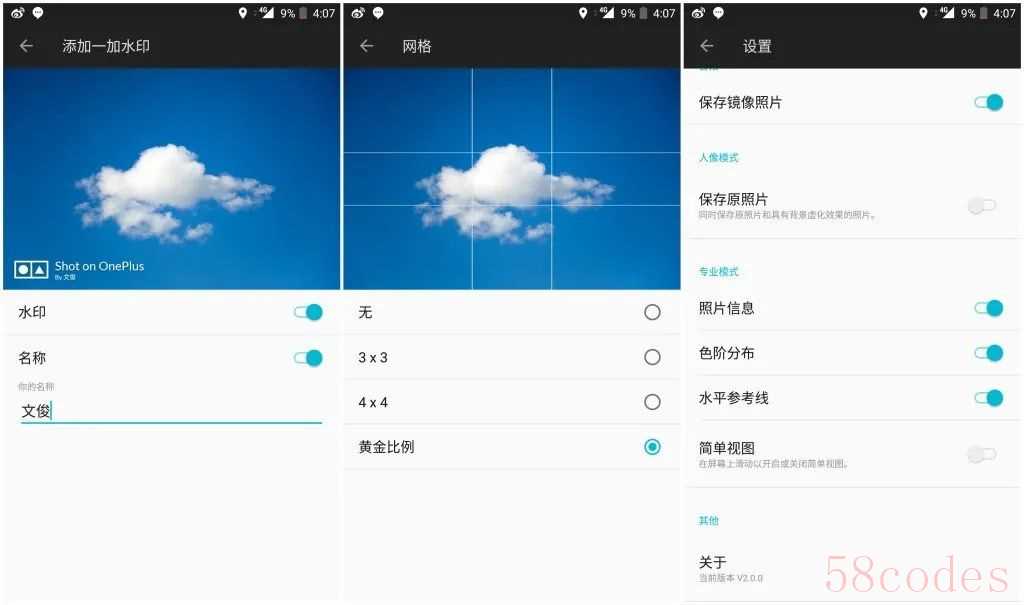 像一加在「Shot on OnePlus」旁边加上两个小图案的同时,还支持自定义摄影师名字。
