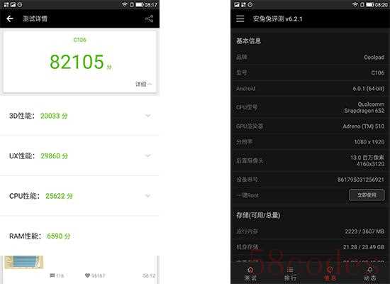 在cool1 dual的实际跑分测试当中,其取得了高通82105分的成绩,要知道这一分数值基本上已经赶上了今年的一些准旗舰机型。