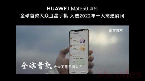 在今年南方周末2022十大高燃瞬间的盘点中,与神舟十四号、问天实验舱一同出场的,还有一位略显特别的嘉宾——华为Mate50。作为全球首款支持卫星通讯的手机,华为Mate50代表中国科技,在卫星通信史上写下重要一笔。