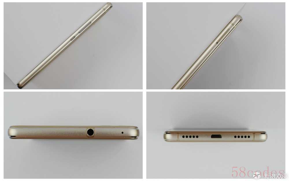 其3.5毫米的标准耳机插孔位于机身顶部右侧,同时还有降噪麦克风,机身底部设计比较均衡对称,中间是micro USB接口,也有金色天线条。