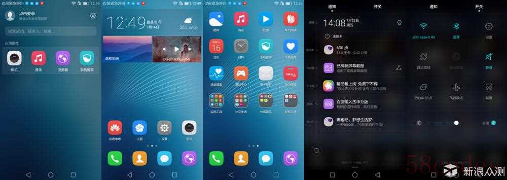 主界面、通知、快捷开关