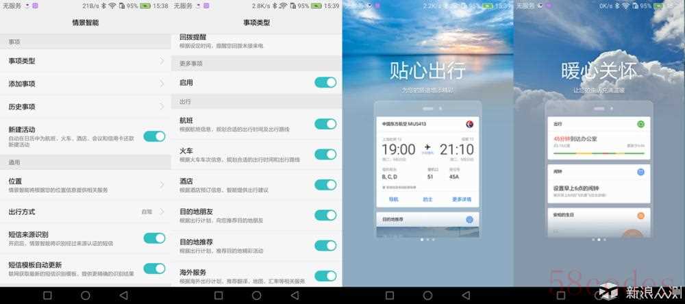 情景智能模式对经常出差的人来说,又是一大帮助,可以根据你绑定的信息,及时推送你出行的机票等信息。