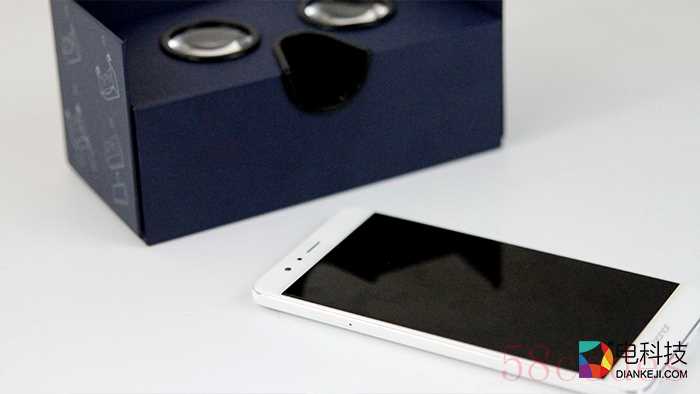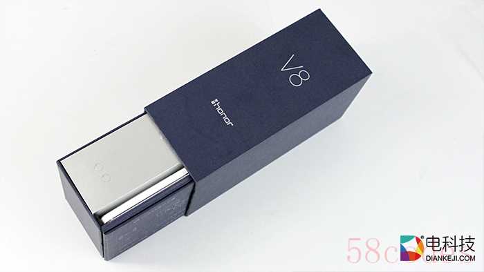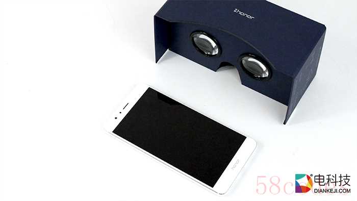 荣耀V8陶瓷白采用与其他配色相同的紧凑包装。深色包装外层有网格纹路。抽出包装内层,可以看到整体的结构比较复杂,而手机就横插在包装内层,用磨砂保护膜包裹着。荣耀V8的包装盒非常有新意,经过简单DIY就可以变成一个便携式的VR眼镜,想必荣耀V8中的这个是“V”就代表“VR”的意思了。