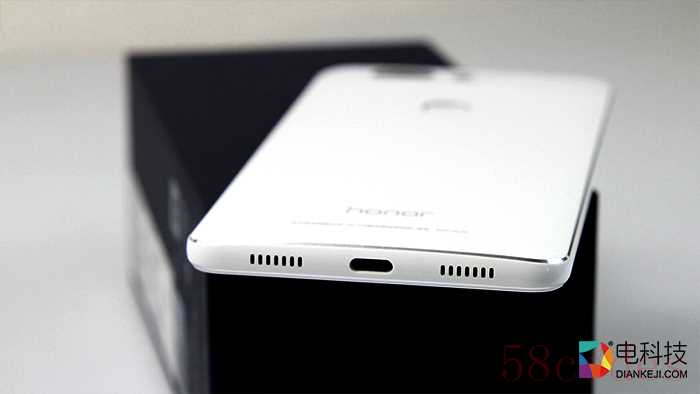 机身右侧从上到下依次是音量键、电源键和智灵键 按键在手感和形状上区分很明确,可以有效避免误触的发生。细节方面,机身外部没有一颗螺钉裸露,同时,所有开口均严格居中,非常精致,可见荣耀V8陶瓷白的品控之严格。