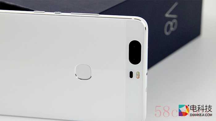 手机背面最显眼的两颗后置摄像头平行排列在机身上方偏左的位置,中间位置从上到下依次为双色温闪光灯、激光对焦和指纹识别模块。V8高程度的机身一体化设计,使得机身背面的陶瓷白配色成为了最大亮点,宛如一块洁白无瑕的美玉,所谓陶瓷白就是在原有金属后盖的基础上在表层进行陶瓷质感的喷涂处理,使得手感温润爽滑,呈现出不一样的独特触感。再配合前后高光设计,给人一种唯美圆润的感觉,尽显高贵典雅范儿。看起来和iPhone7的高亮黑相得益彰,同时背部带有一定的弧度,握持起来会更加贴合手掌,使这款5.7英寸的大屏手机仍旧给人足够好的握持感。