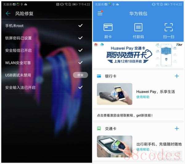 EMUI8.0此次在支付安全方面更加完善,不仅可以一键扫描支付风险,还能将日常金融应用加入到安全助手中,无论是微信还是支付宝都完美支持,可以放心的买买买啦#此外华为钱包更是整合了银行卡、公交卡等日常高频支付方式。近日华为还开展了HUAWEI Pay公交卡免费开卡活动,极大地方便了我们日常出行和购物的需要。