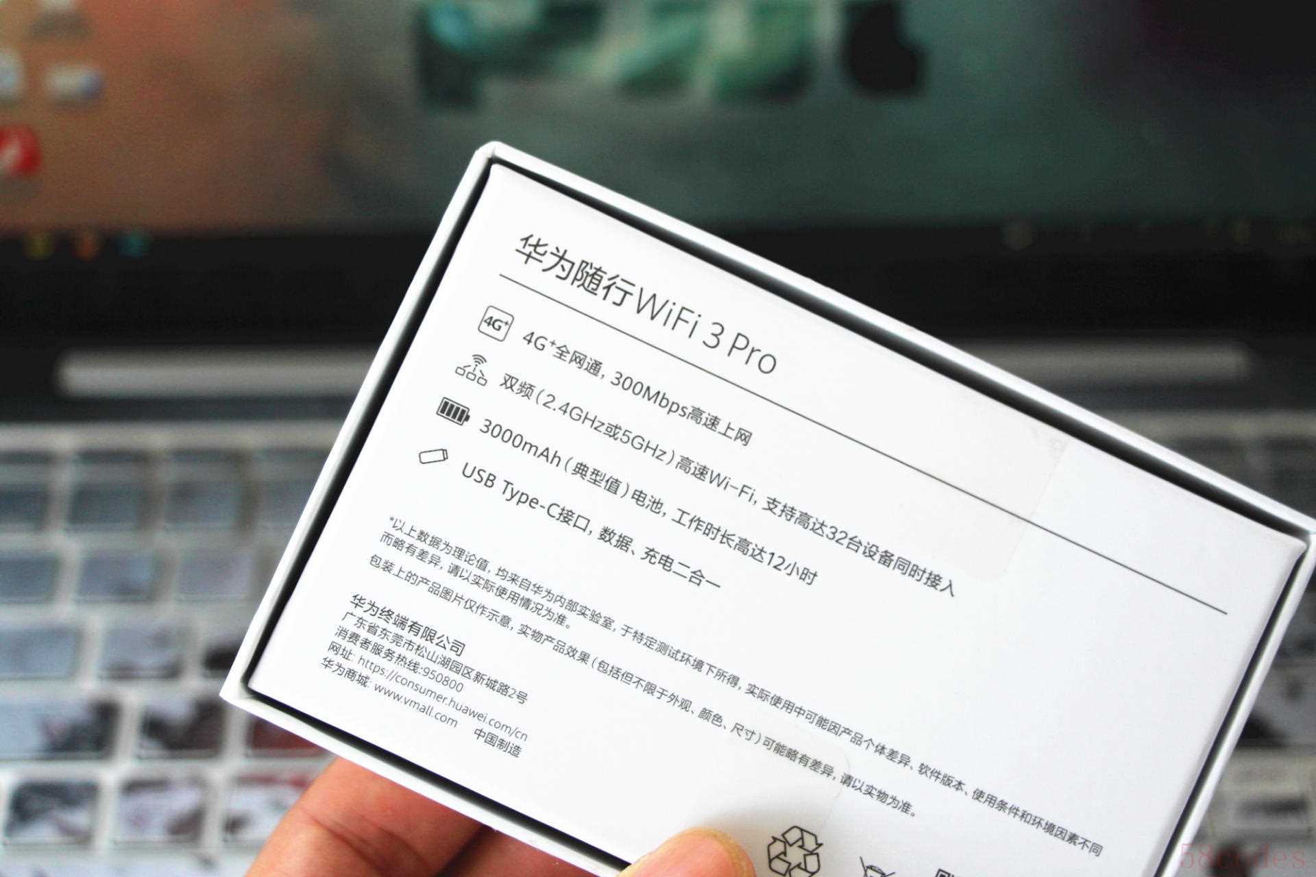 而在包装盒的背面则是一些主打功能的介绍,高网速、多设备连接、大容量电池等功能的加持,可以说华为随行WiFi 3 Pro就是一款为了商务出行、外出旅游、组团开黑等多种场景下使用的WiFi 产品。