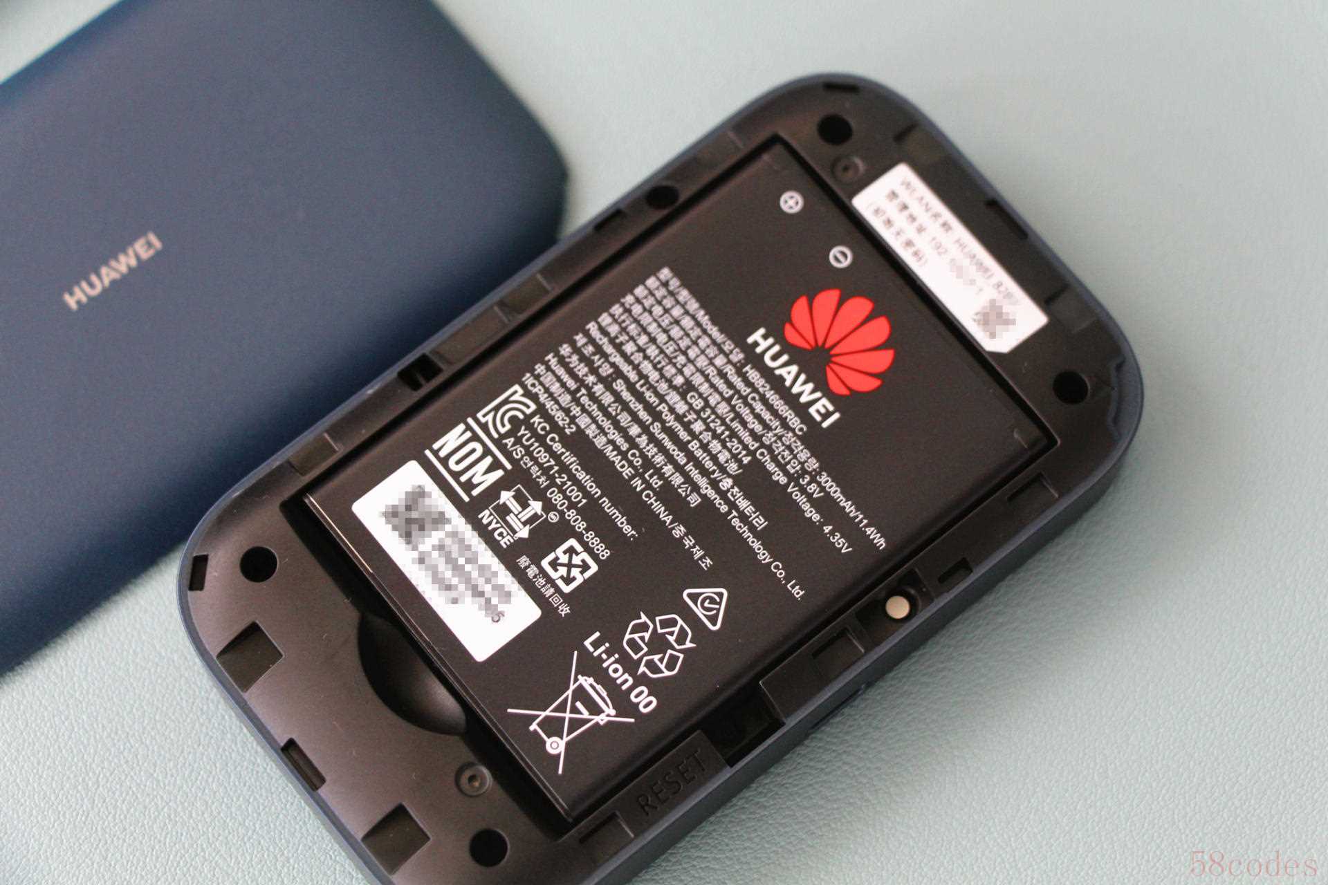 在我们拆下机身后盖,可以看到华为随行WiFi 3 Pro采用了一块可拆卸电池,电池的容量达到了3000mhA,在充满电的状态下,可以提供12小时的续航表现,完全可以满足我们在出差或者旅行途中智能设备的无线网络使用需求。