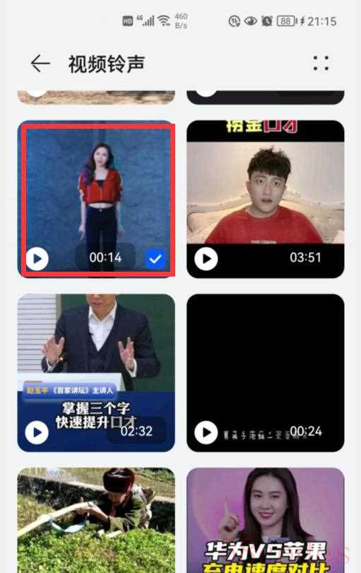选择自己准备好的那个视频,如上图,我选择的是那个美女跳舞的视频。这样,我们就设置好了,然后,手机再次收到来电的时候,屏幕上就会显示那个视频铃声了。
