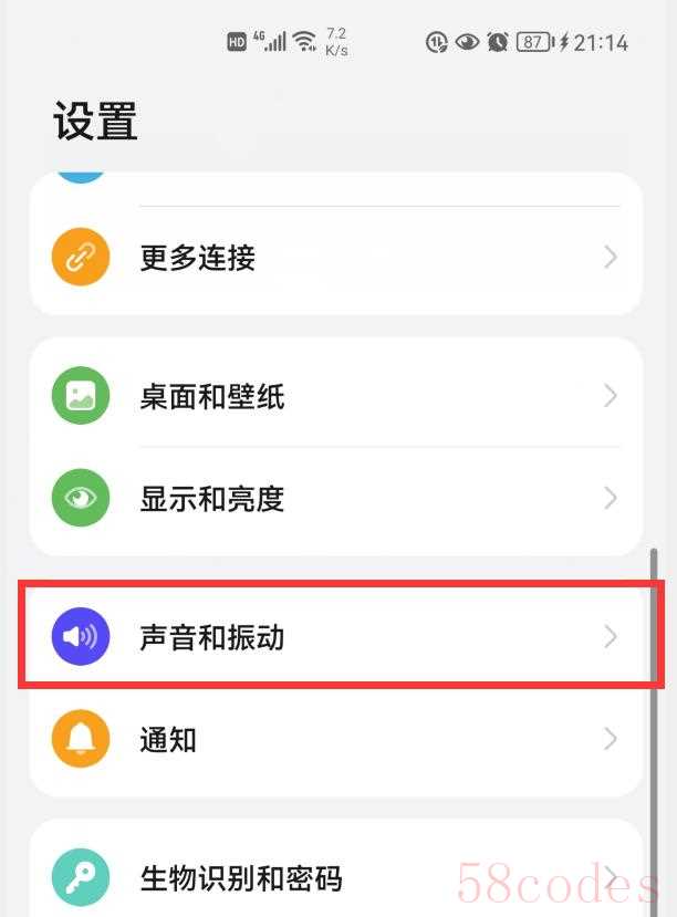 找到“声音和振动”选项,点击进去,就会进入手机声音的设置界面(如下图)。