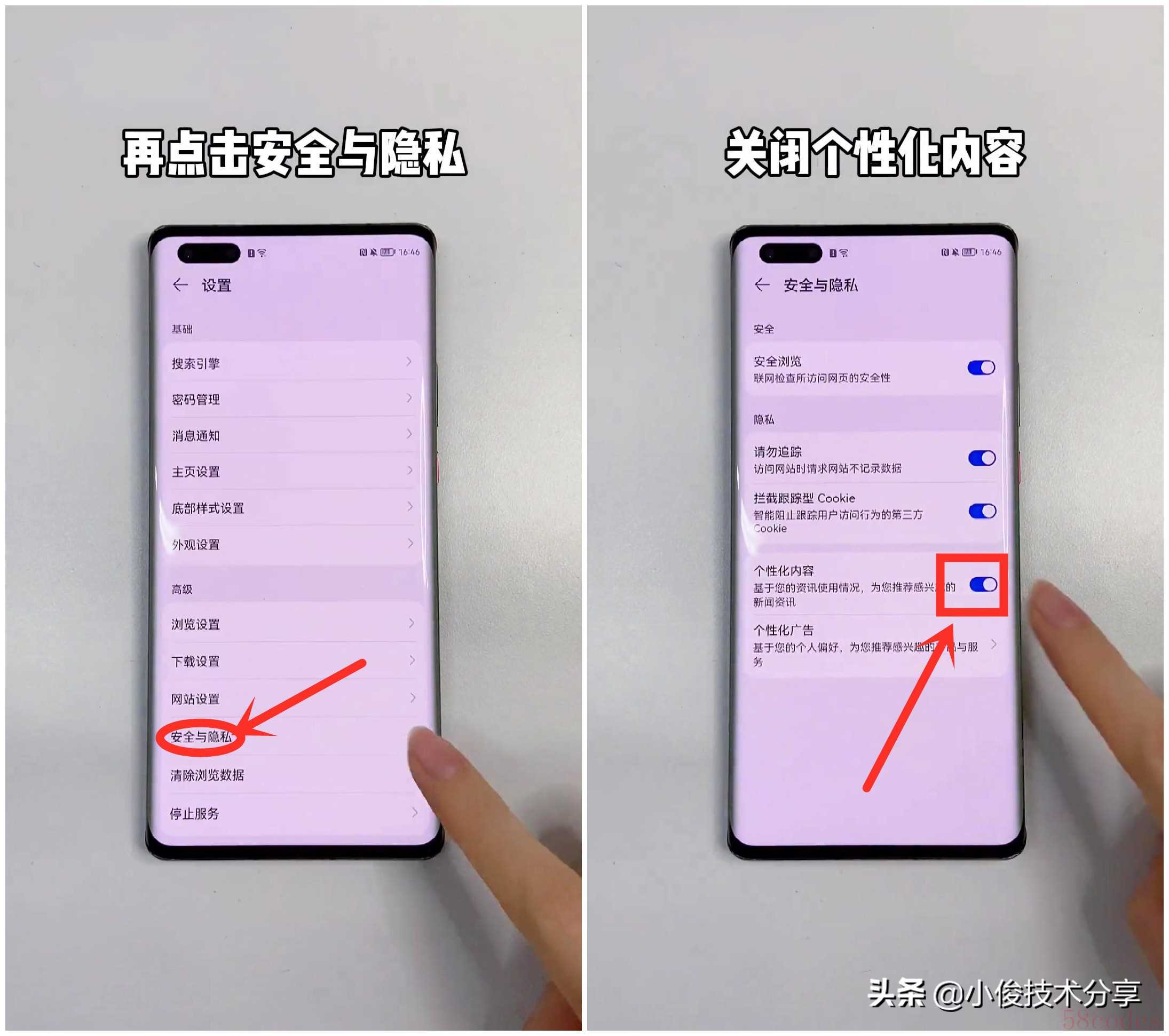 接着再返回去找到【安全与隐私】,然后把【个性化内容】开关先关掉