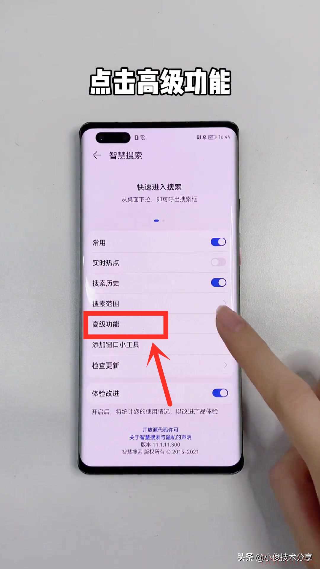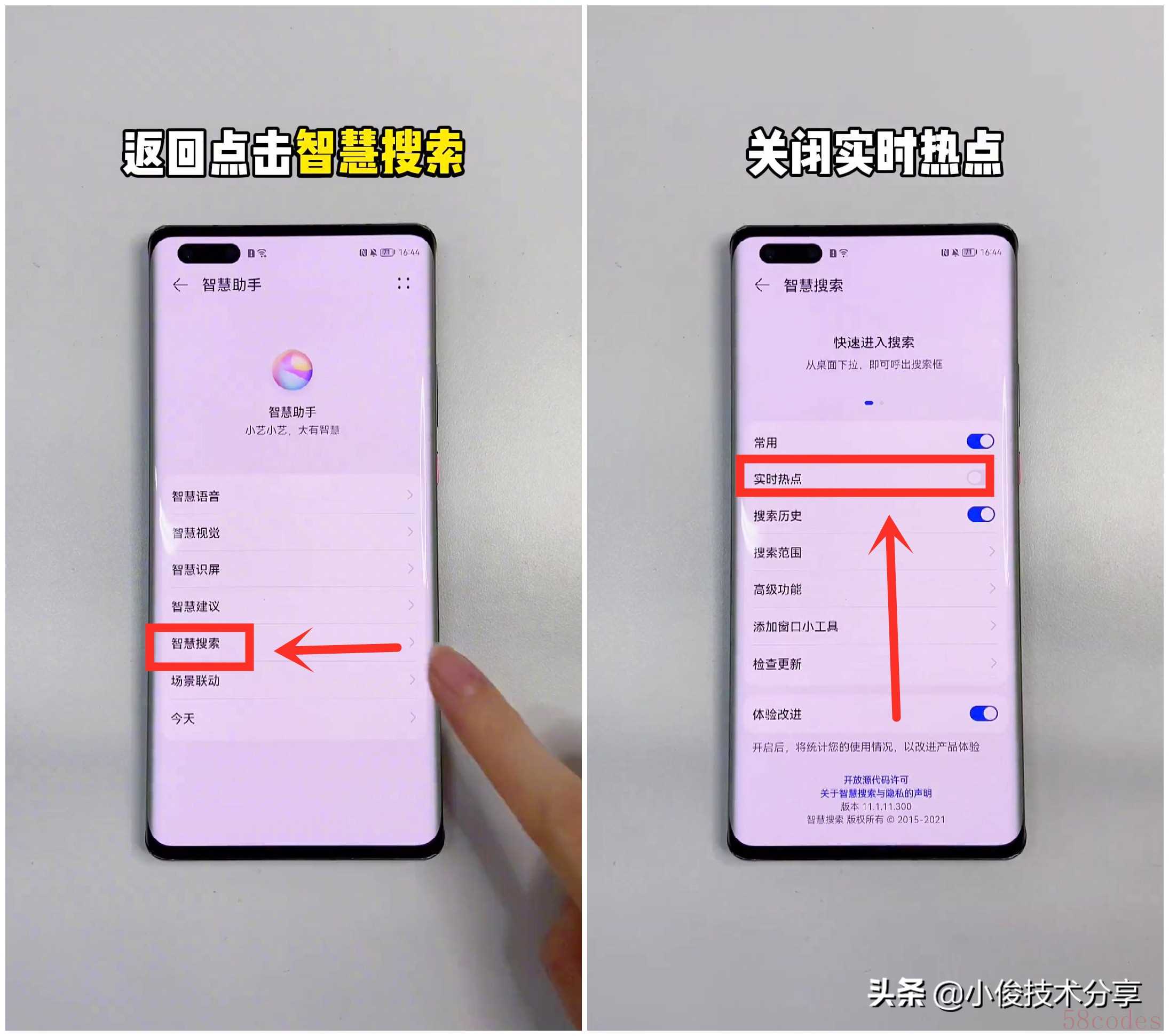 关掉智慧助手中的个性化设置之后返回去点击【智慧搜索】,然后把【实时热点】开关关掉!
