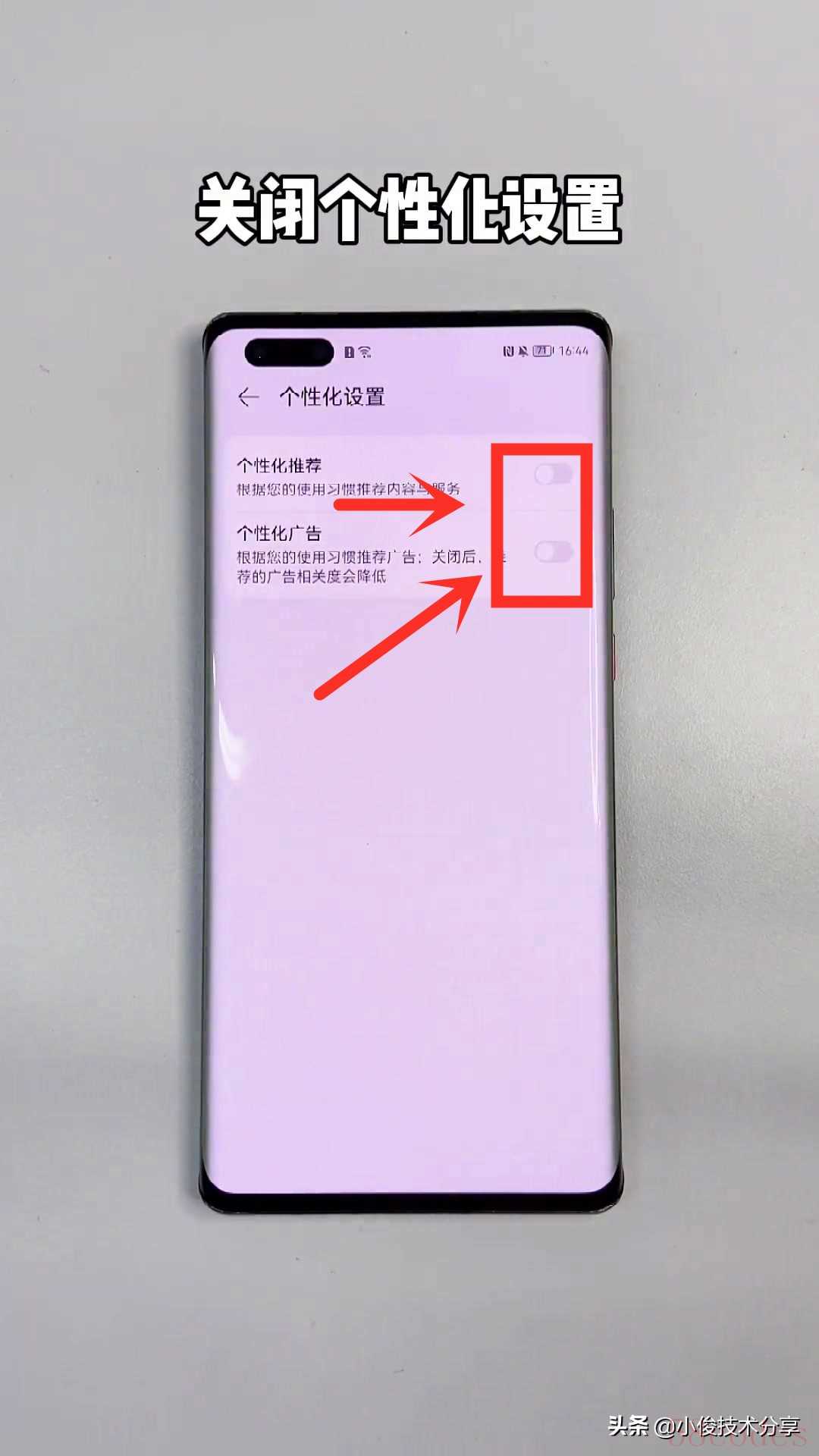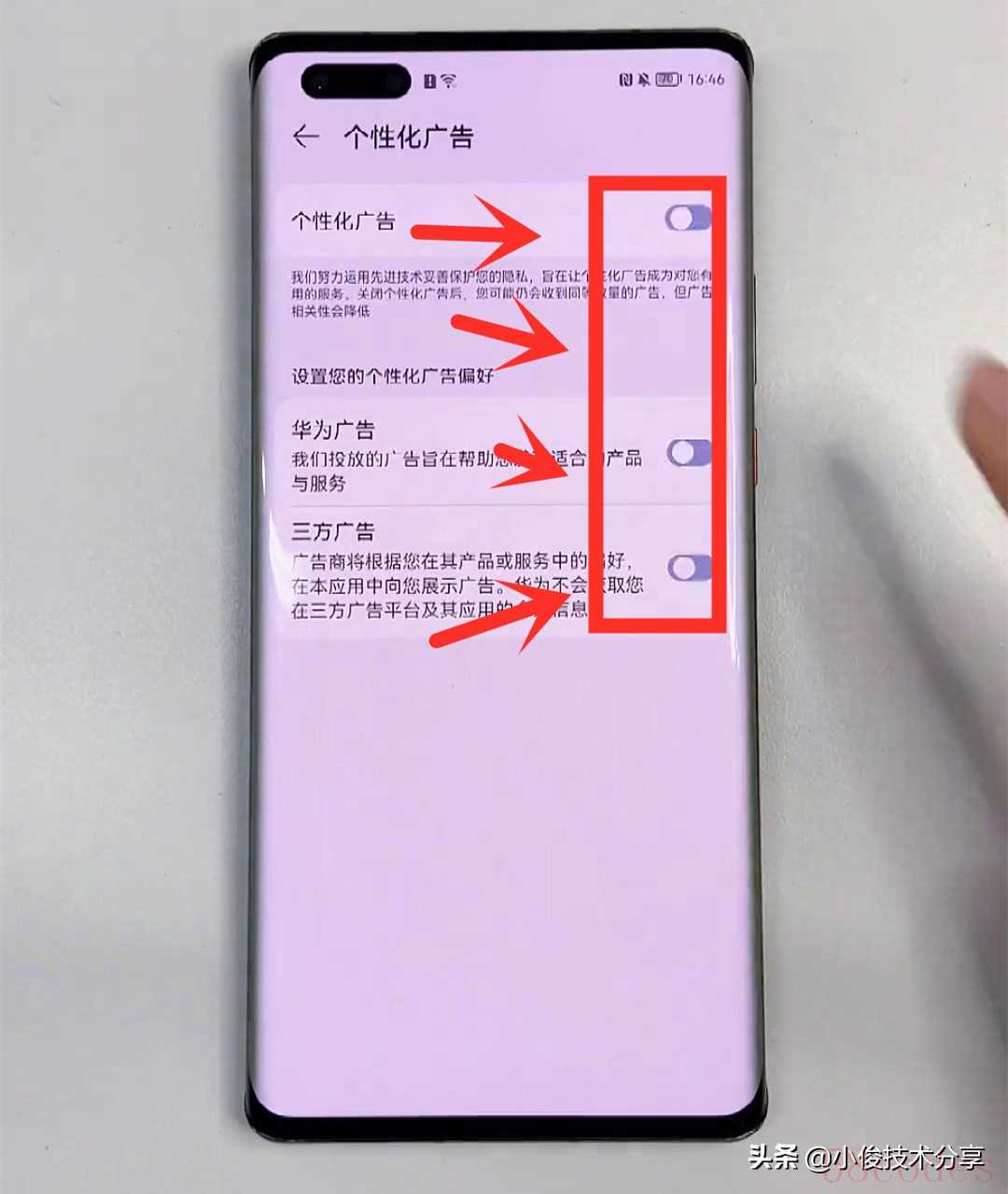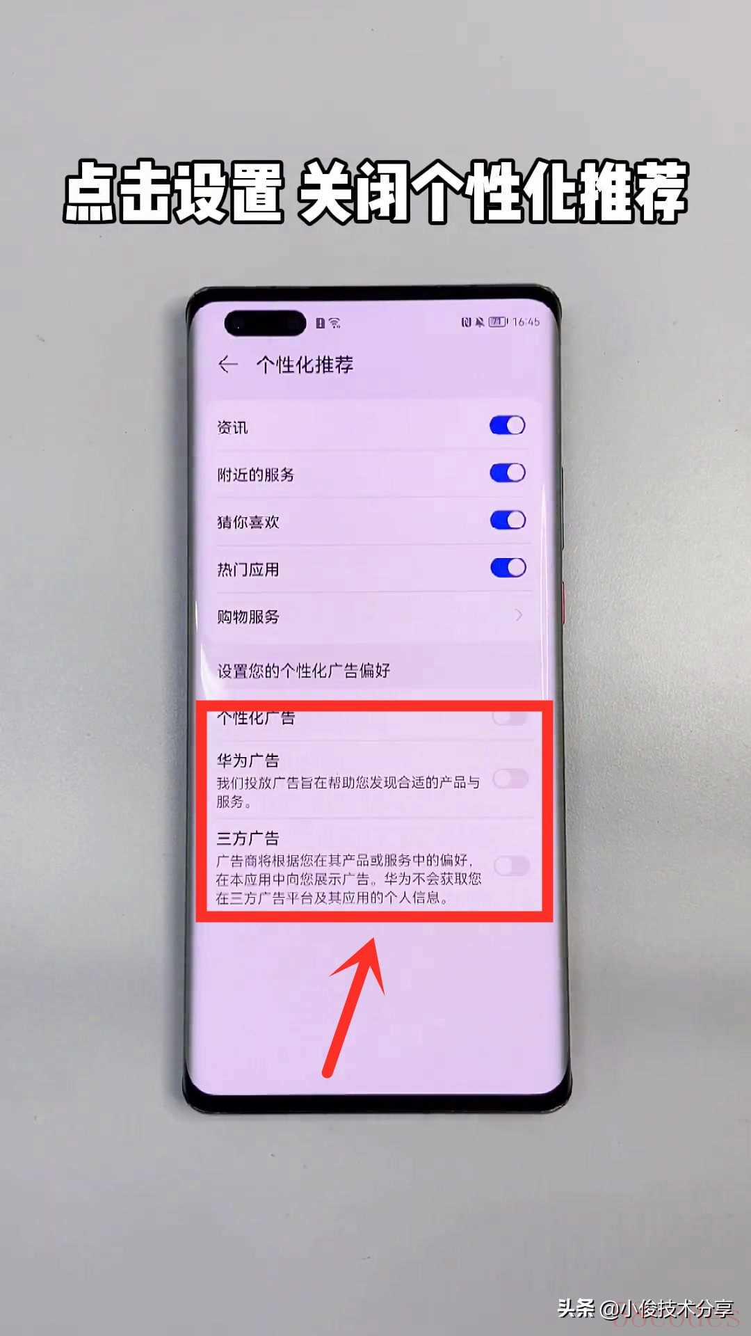 三、关闭今天中的个性化广告、华为广告和三方广告
