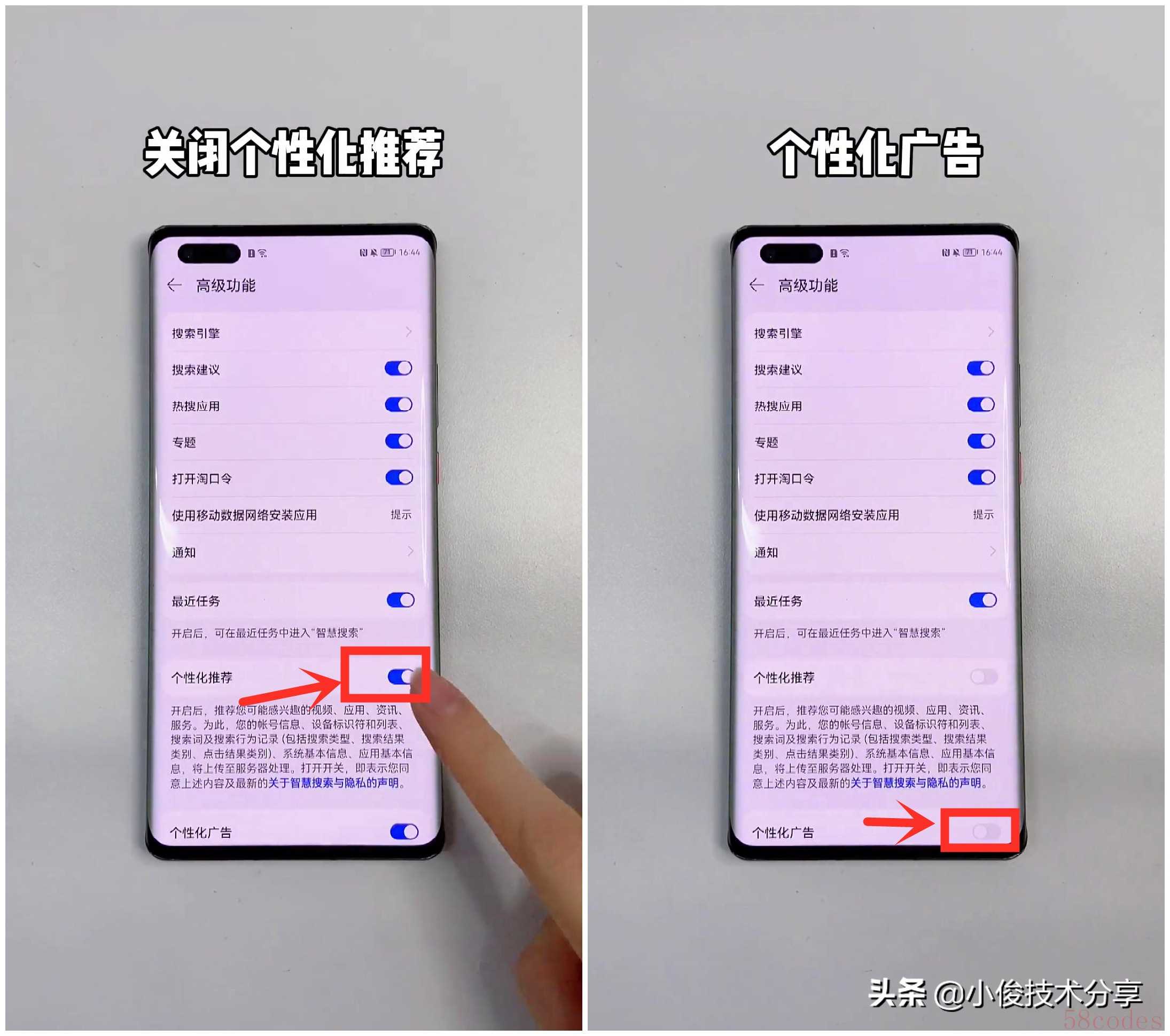 在高级设置中,直接把【个性化推荐】和【个性化广告】关掉