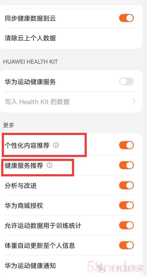 14. 运动健康——我的——隐私管理——个性化内容推荐关闭。