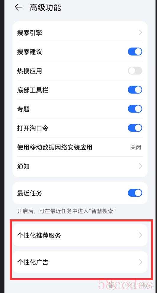 智慧搜素——高级功能——个性化推荐和个性化广告全部关闭。