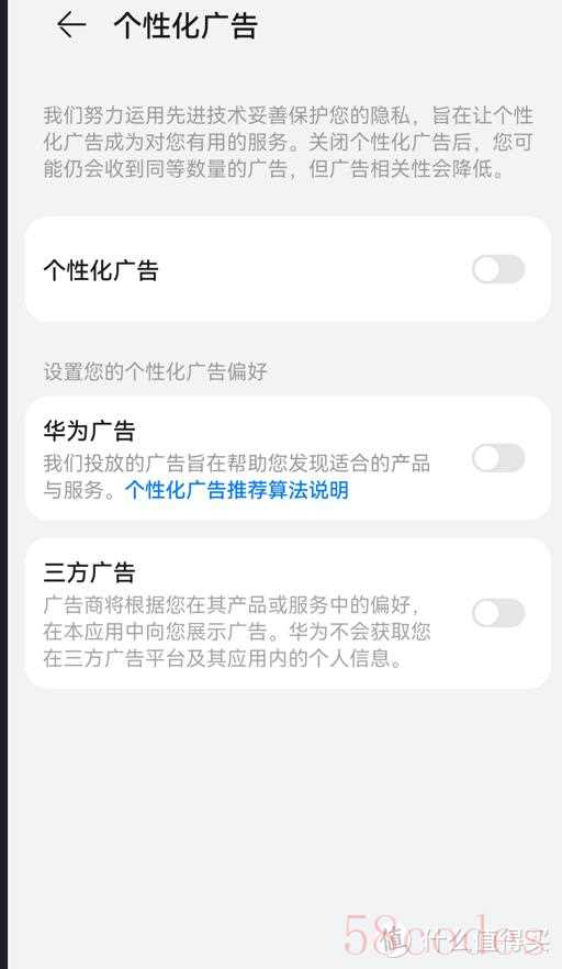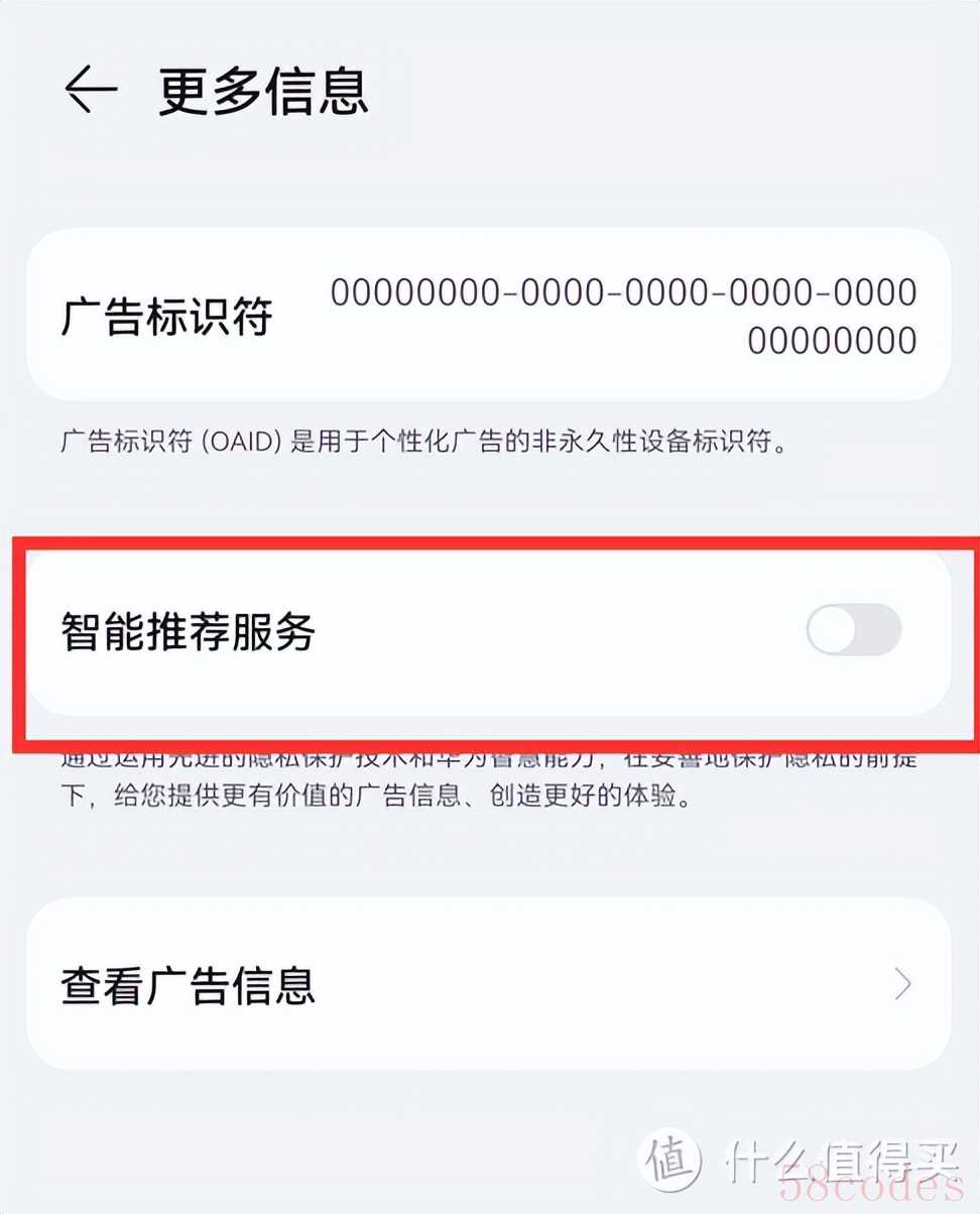 HMS CORE——广告——更多信息——智能推荐服务关闭。