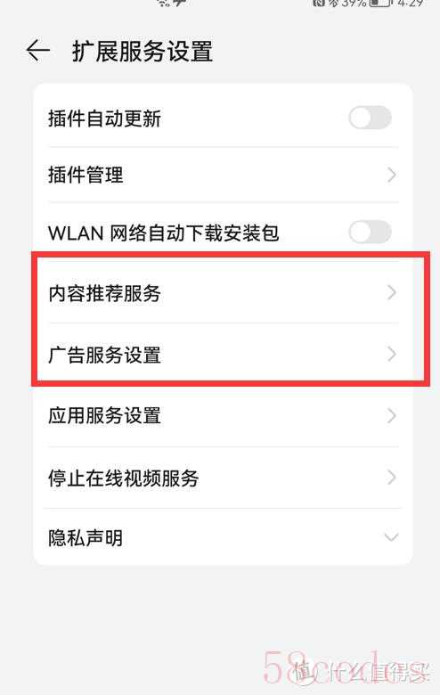 17. 华为视频——我的——设置——扩展服务设置——内容推荐服务关闭,广告服务设置全部关闭。