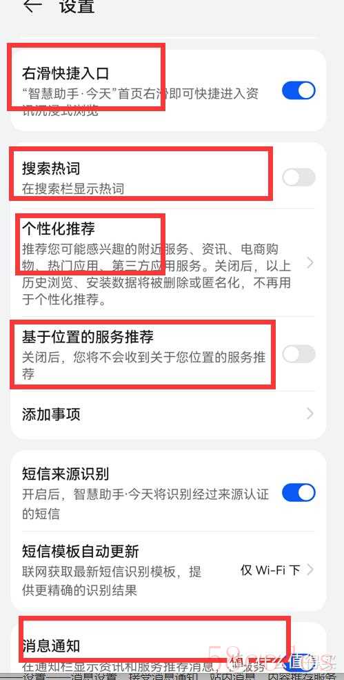15. 智慧生活——我的——设置——消息通知,个性化服务全部关闭。