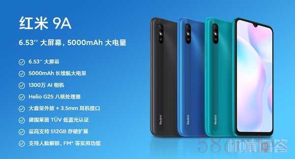 其他方面,Redmi 9A保留了5000mAh超大电池,续航不用担心,大音量外放、3.5mm耳机孔、人脸识别和FM等经典配置和功能也一个不落。