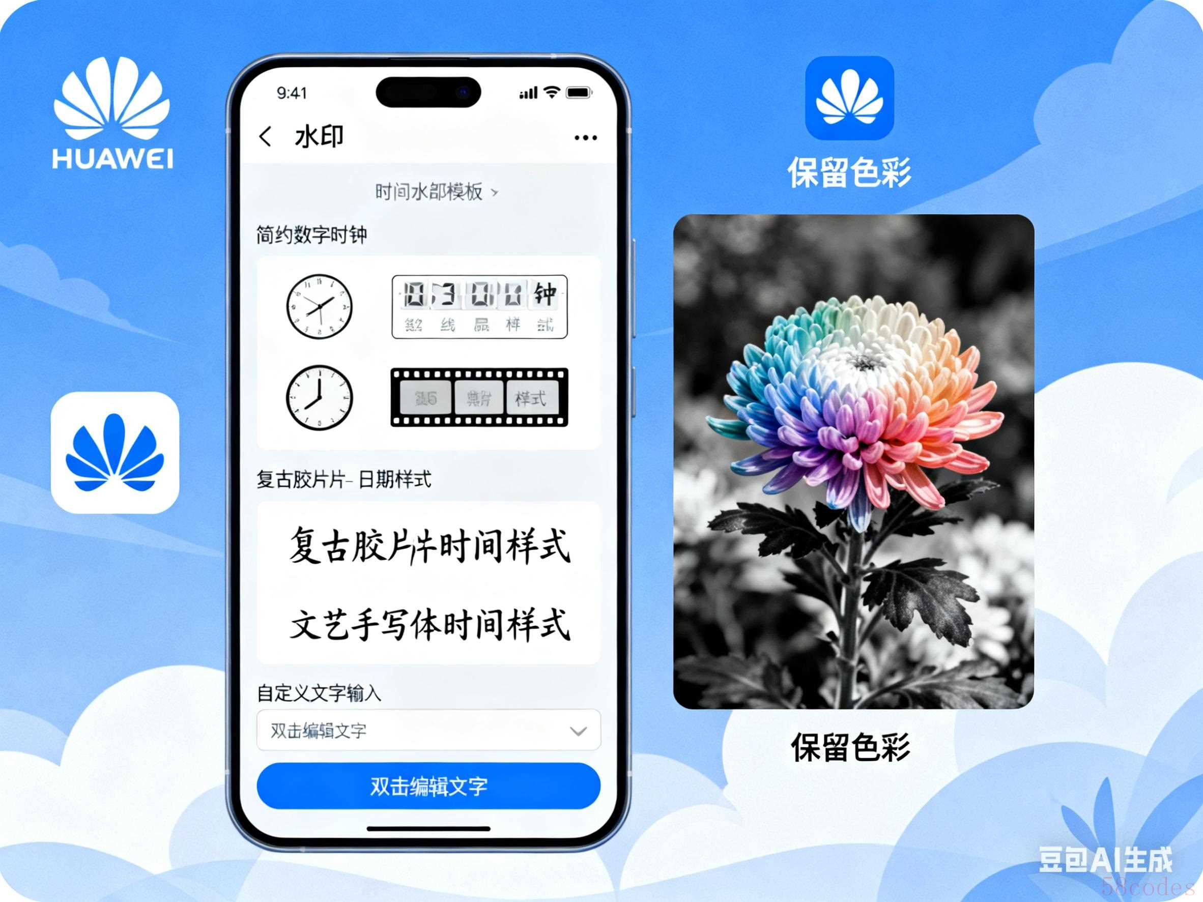 - 拍摄时自动加:打开相机,点右上角“设置”→“水印”,勾选“时间”“地点”,还能加“机型水印”(比如“Mate60 Pro拍摄”),甚至自定义文字(比如“全家出游”),拍出来直接带信息,不用后期折腾。
