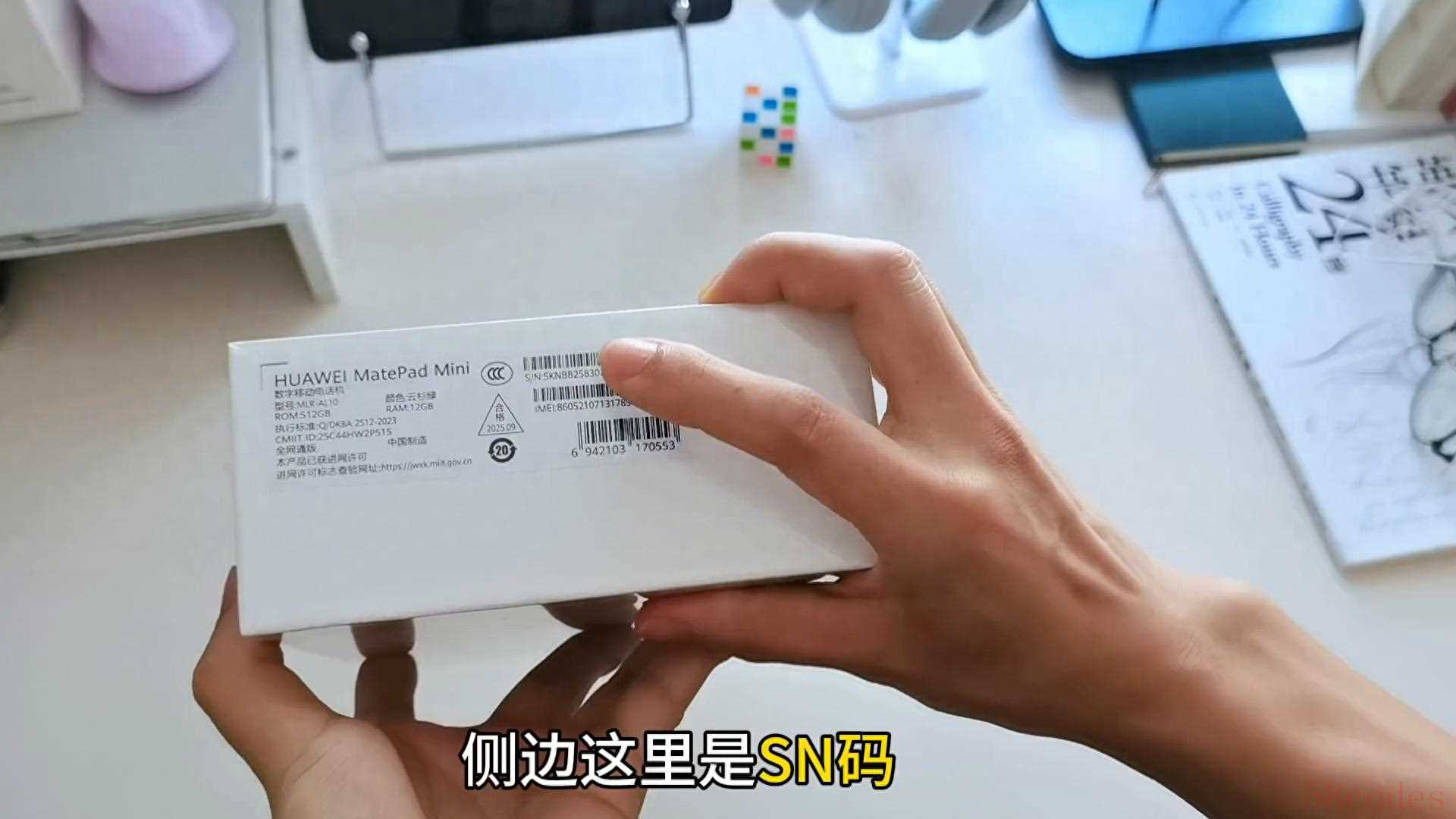 沉浸式开箱,入手的这款是云杉绿配色,一直缺货,现在才拿到手。非常喜欢这个云杉绿配色,但只有512G内存的。侧边这里是SN码,核对过了是全新未激活的。