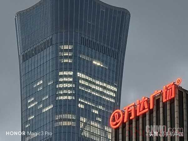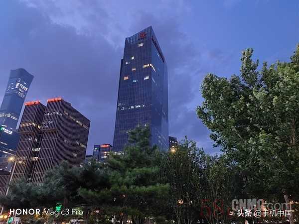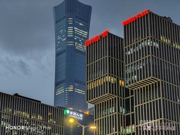 荣耀Magic3 Pro 3.5X样张 以上一组样张则是测试了在傍晚和夜晚荣耀Magic3 Pro的长焦表现,前两张的拍摄时间是北京的8点左右,天还没有完全黑下来。可以看出,变焦之后,不论是“万达广场”灯牌高光的压制还是中国尊的细节,都是值得称赞的,第二张更是直接10倍变焦,表现同样不错。最后两张则是在9点多之后天空彻底暗下来之后拍摄的,均为3.5倍变焦,在灯光的映衬下,居民楼的细节还是不错的,而且画面中的大树树叶也是绿的,并未出现一片黑的情况。