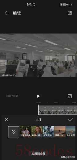 3D LUT 比如说电影级的3D LUT,我们可以在相机界面中的“电影”版块启动,在这里,你可以通过21:9的宽屏模式拍摄10bit 4K HDR视频,搭配预置的8款3D LUT,拍出很有电影质感的视频内容。而且Magic3系列还能够根据AI识别的场景元素智能匹配适合的LUT,甚至都不需要用户自己去选择。目前预置的8款分别是好莱坞经典、蔚蓝交响、欢乐之城、如风往事、风之私语、神秘之境、黑白魅影、温暖之光。