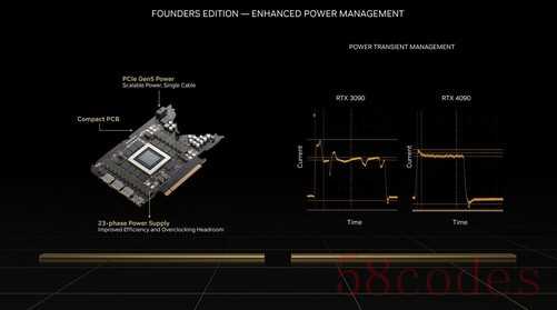 本次发布的GeForce RTX 40系显卡由全新的NVIDIA Ada Lovelace架构打造,采用TSMC 4nm定制工艺(TSMC 4 nm NVIDIA Custom Process),旗舰核心AD102达到了恐怖的760亿个晶体管,而在RTX 30系显卡中为280亿个。