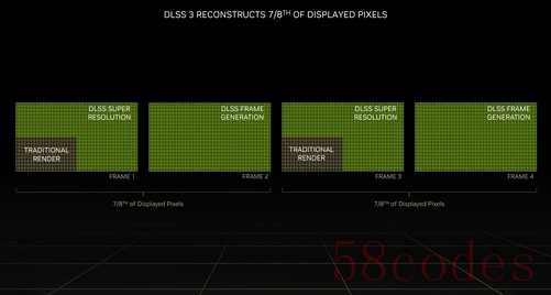 DLSS 3本次推出的DLSS 3也是RTX 40系一大卖点,从DLSS 2.3直接迈入了3.0版本,也能看出此次的升级之大。而DLSS 3也被NVIDIA官方称为神经网络渲染新时代。全新的DLSS 3在原有的DLSS超分辨率的基础上,添加了光学多帧生成技术,以生成全新的帧,而不像原来只能生成像素。