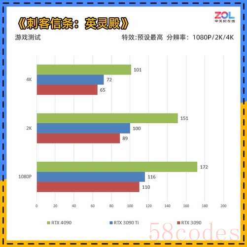 在《刺客信条:英灵殿》中,GeForce RTX 4090相比GeForce RTX 3090 Ti的提升分别为:1080p提升48%;2K提升51%;4K提升40%,综合提升46%。