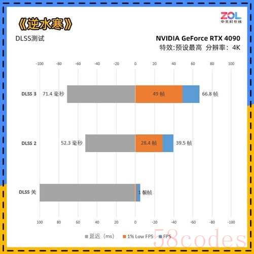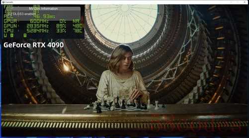 在另外一款国产游戏《边境》的跑分软件中,情况基本与《光明记忆:无限》相同,测试条件均在“RTX最高/DLSS质量”下进行。在《边境》中,GeForce RTX 4090相比GeForce RTX 3090 Ti的提升分别为:1080p提升50%;2K提升67%;4K提升77%,综合提升65%。07 DLSS 3性能测试